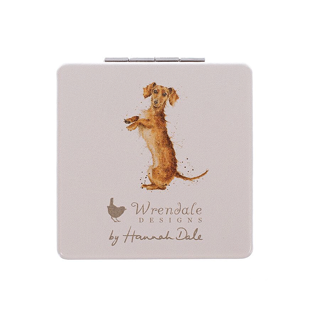 Handy for life on the go and the ultimate handbag essential – this gorgeous Wrendale Designs little pocket mirror features an adorable dashchund . The mirror has a soft smooth feel and comes packaged in an illustrated gift box making it a great gift. The mirror has a different design printed on the reverse. The mirror measures 70mm x 70mm and is made from vegan leather